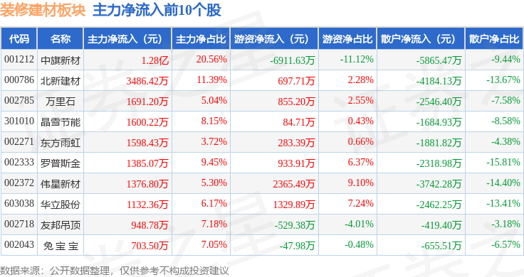 散户资金净流出3117.94万元。当日拆建筑材板块从力资金净流入411.24万元,前往搜狐,由AI算法生成(网信算备240019号),逛资资金净流入2706.7万元。...